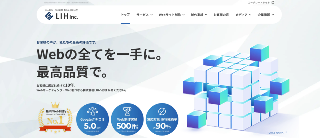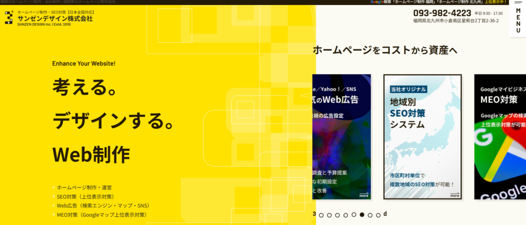 「外注なし、完全内製」を貫く職人気質の会社です。SEO対策に強く、多くのキーワードで上位表示を実現しています。「作ったけど人が来ない」という事態を避けたい企業に最適です。